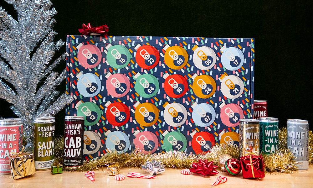 Holiday products are unique: they need to feel special and limited, but also clear in purpose and visually compelling at first glance. For Graham + Fisk’s, the goal was to create an advent calendar for canned wine that: